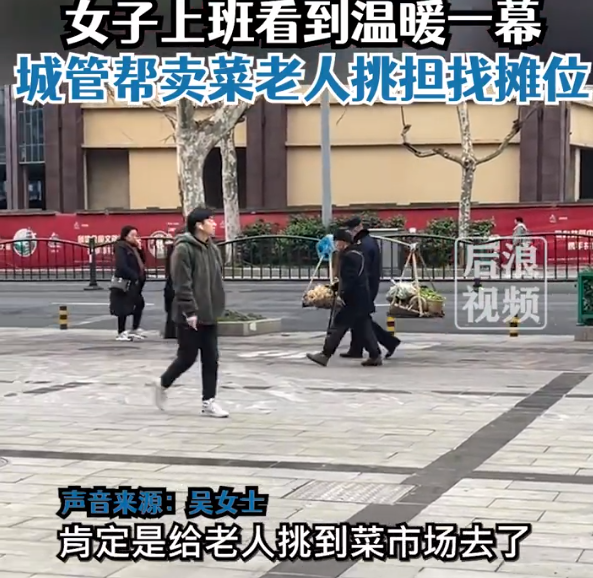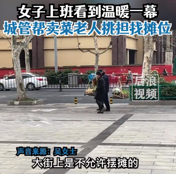 吴女士称,因为街上不允许摆摊,城管帮老人把菜挑到菜市场找摊位。老人不容易,城管这一善举更让人动容。