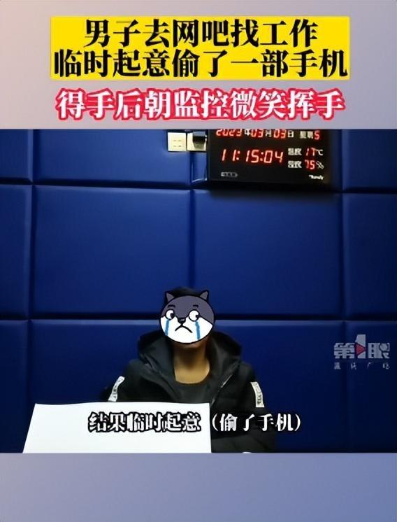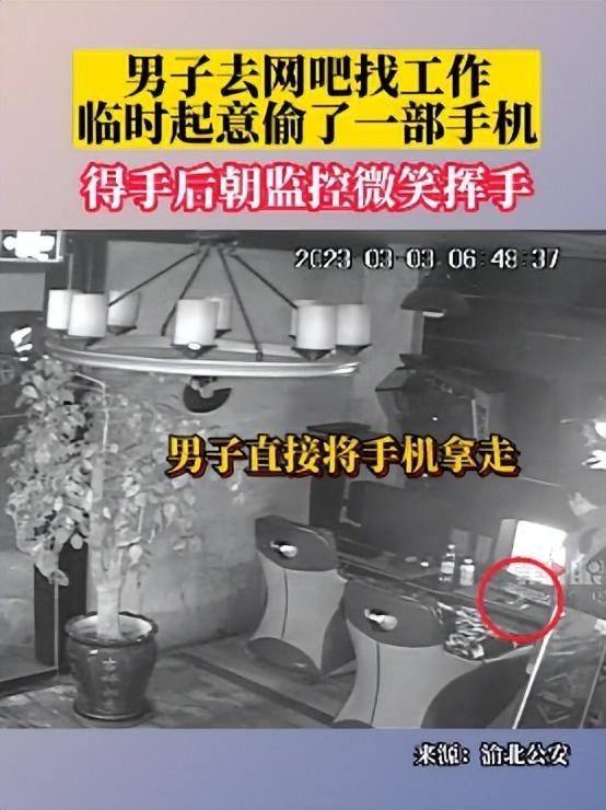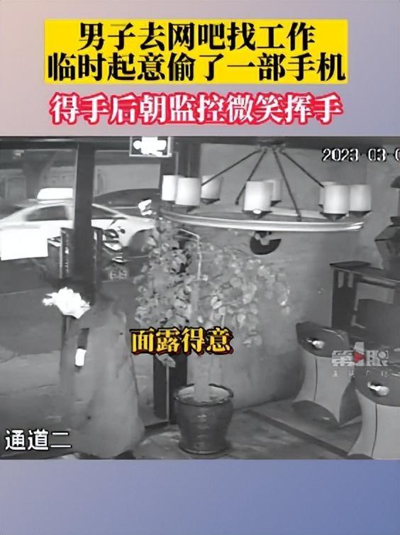 嚣张!男子在网吧偷手机对着监控数次微笑挥手,3小时后被抓:原打算到网吧找工作,老板不在就顺手拿走手机