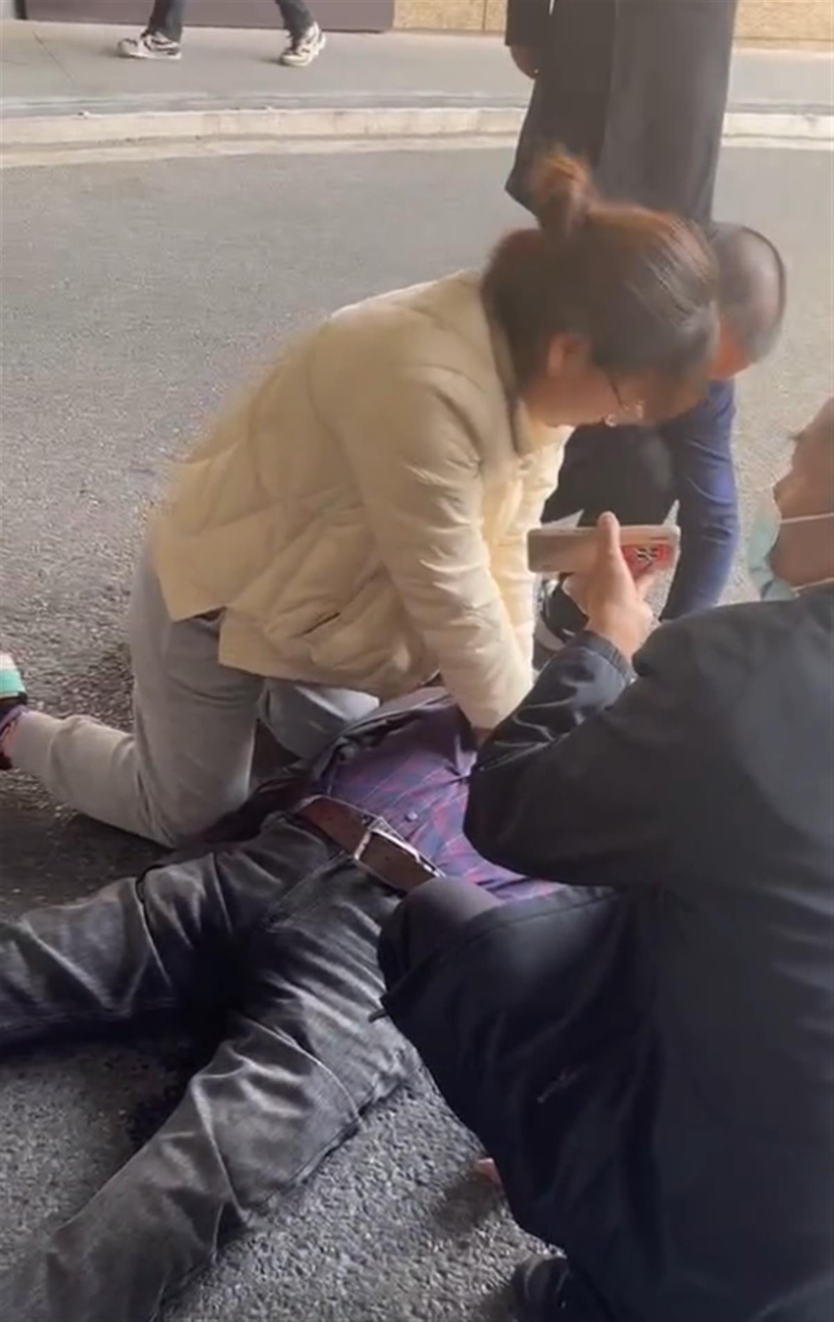 3月5日,浙江杭州上城区某园区一女子双膝跪地,为一名昏厥的男子做心肺复苏。这一幕被网友拍下,整个视频持续约6分钟,其间女子一直跪在地上抢救男子。