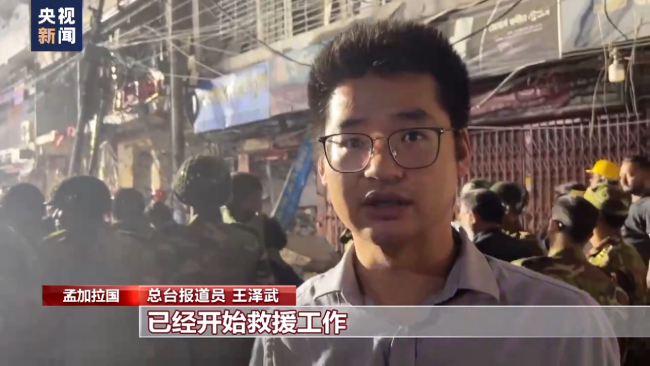 总台报道员王泽武:当地时间3月7日下午,孟加拉国首都达卡发生爆炸,上百人受伤,部分伤者情况较为危急。目前没有中国人在此次爆炸中伤亡。您看到的是事故发生的现场,目前当地警方和救援人员已经开始救援工作,事故原因尚在调查之中。