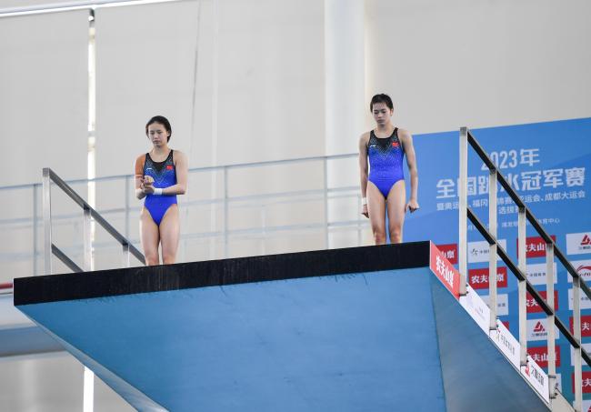 新华社上海3月19日电 (记者许东远)19日,2023年全国跳水冠军赛在上海开赛。广东队全红婵与上海队陈芋汐搭档出战女子双人10米跳台决赛,最终以总分362.04分夺得冠军。